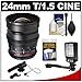 Review Samyang 24mm T/1.5 Cine Manual Focus Wide Angle Lens (for Video DSLR) with Microphone + LED Light & Bracket + Accessory Kit for Nikon D3100, D3200, D5100, D7000, D600, D800, D4 Digital SLR Cameras. Reviewed by Brody Jr. Rating: